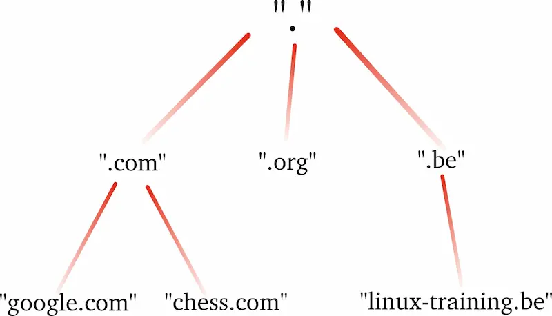 域名解析靠的是 DNS,我们在浏览器输入一个域名时,DNS 负责将该域名解析为相应的 IP 地址,以便后续与目标服务器建立 TCP/IP 连接。探寻 DNS 工作原理之前,我们先了解域名的结构。如图 2-3 所示,域名是一种树状结构,最顶层的域名是根域名(注意是一个点“.”,它是 .root 的含义),然后是顶级域名(top-level domain,简写 TLD),再是一级域名、二级域名、三级域名。