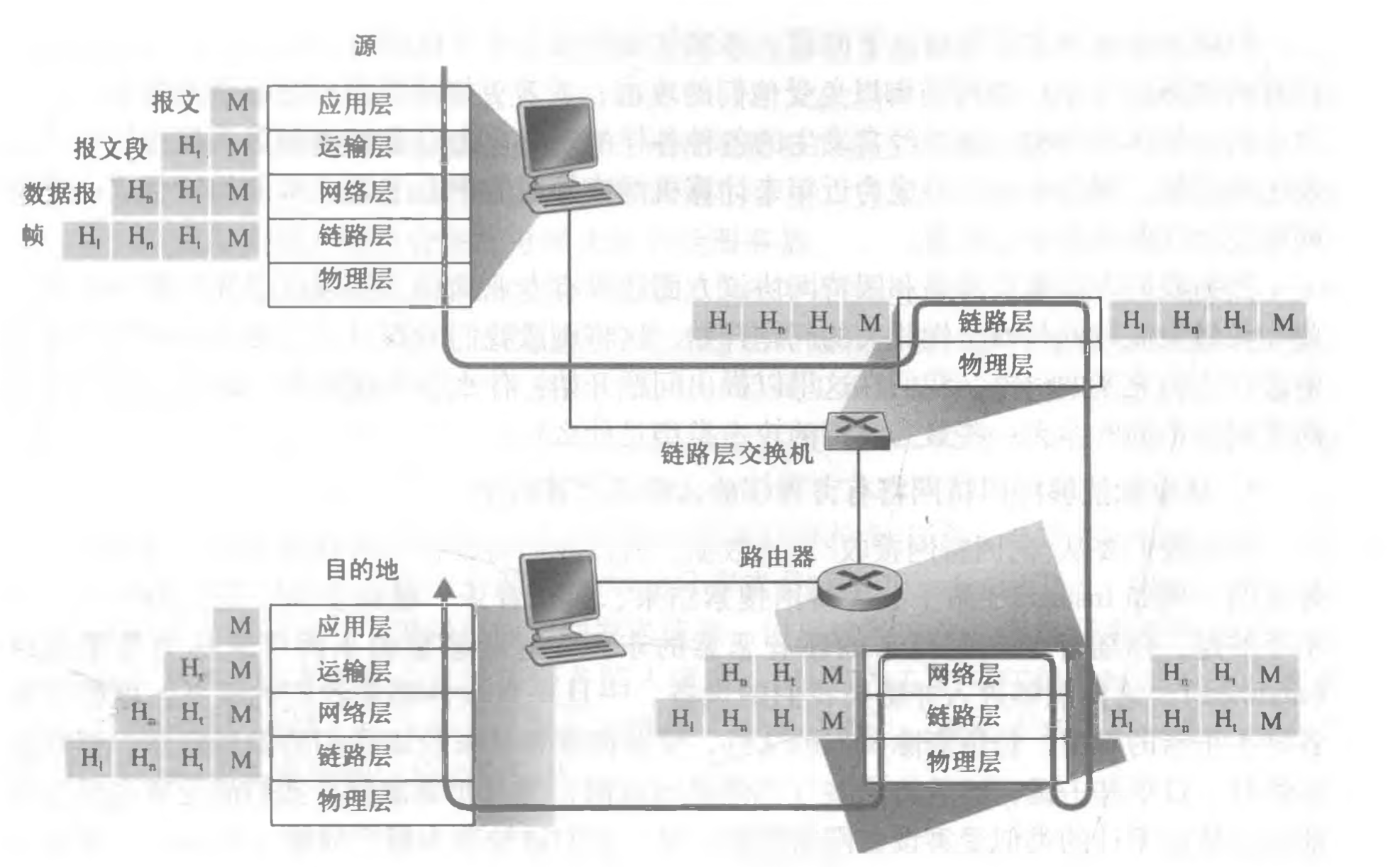 运输层则向网络层传递该报文段,网络层增加了如源和目的端系统地址等网络层首部信息(Hn),生成了网络层数据报。该数据报接下来被传递给链路层,链路层增加它自己的链路层首部信息并生成链路层帧。在每一层,一个分组具有两种类型的字段:首部字段和有效载荷字段。有效载荷通常是来自上一层的分组。