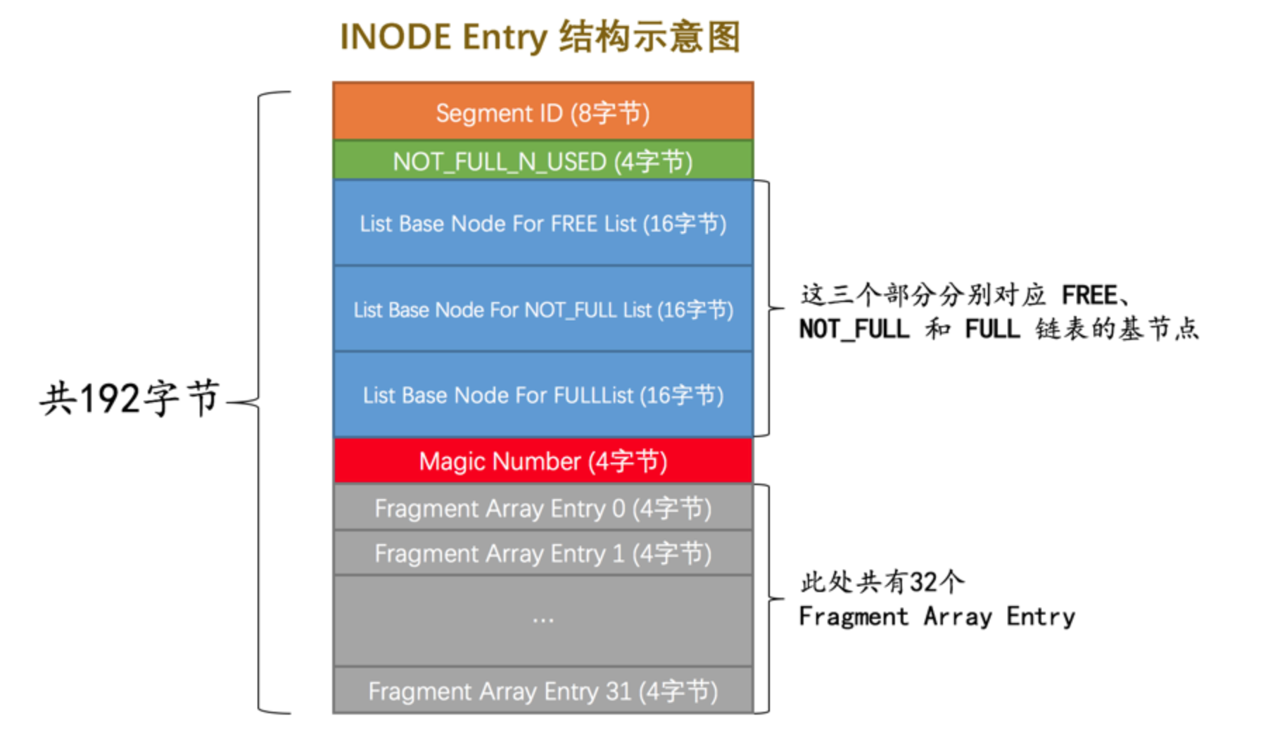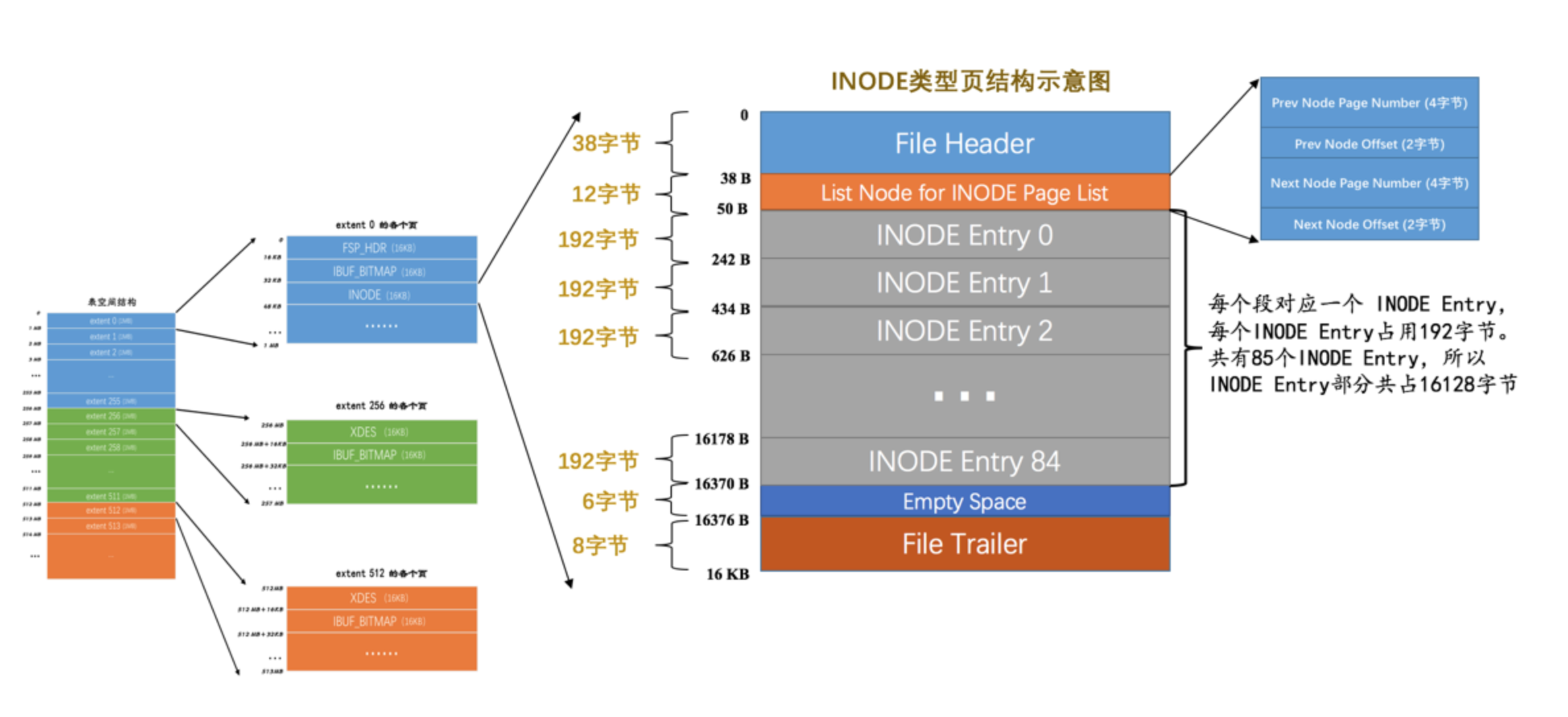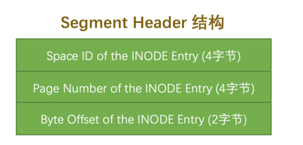 | Segment Header | 段头部信息 | 10字节 | 记录本页所在段对应的INODE Entry位置信息 |