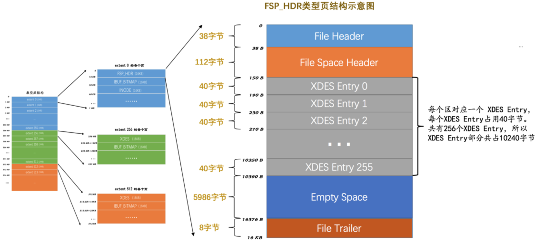 | Empty Space | 尚未使用空间 | 16272字节 | 用于页结构的填充,没什么实际意义 |