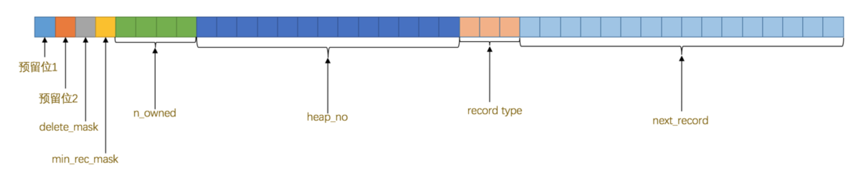 | record_type | 3 | 表示当前记录的类型,0表示普通记录,1表示B+树非叶子节点记录,2表示最小记录,3表示最大记录 |