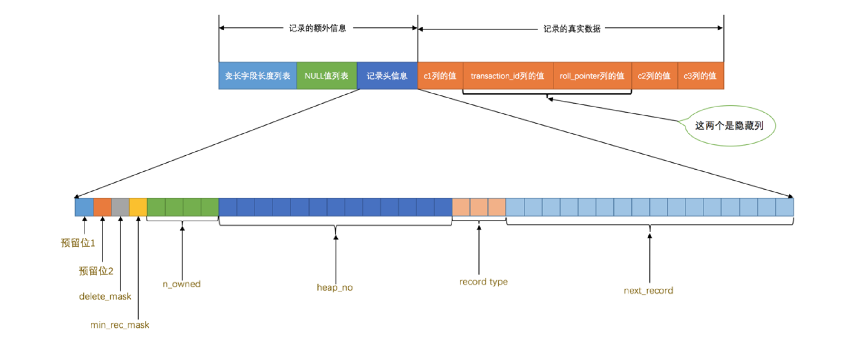 一条完整的记录其实可以被分为记录的额外信息和记录的真实数据两大部分